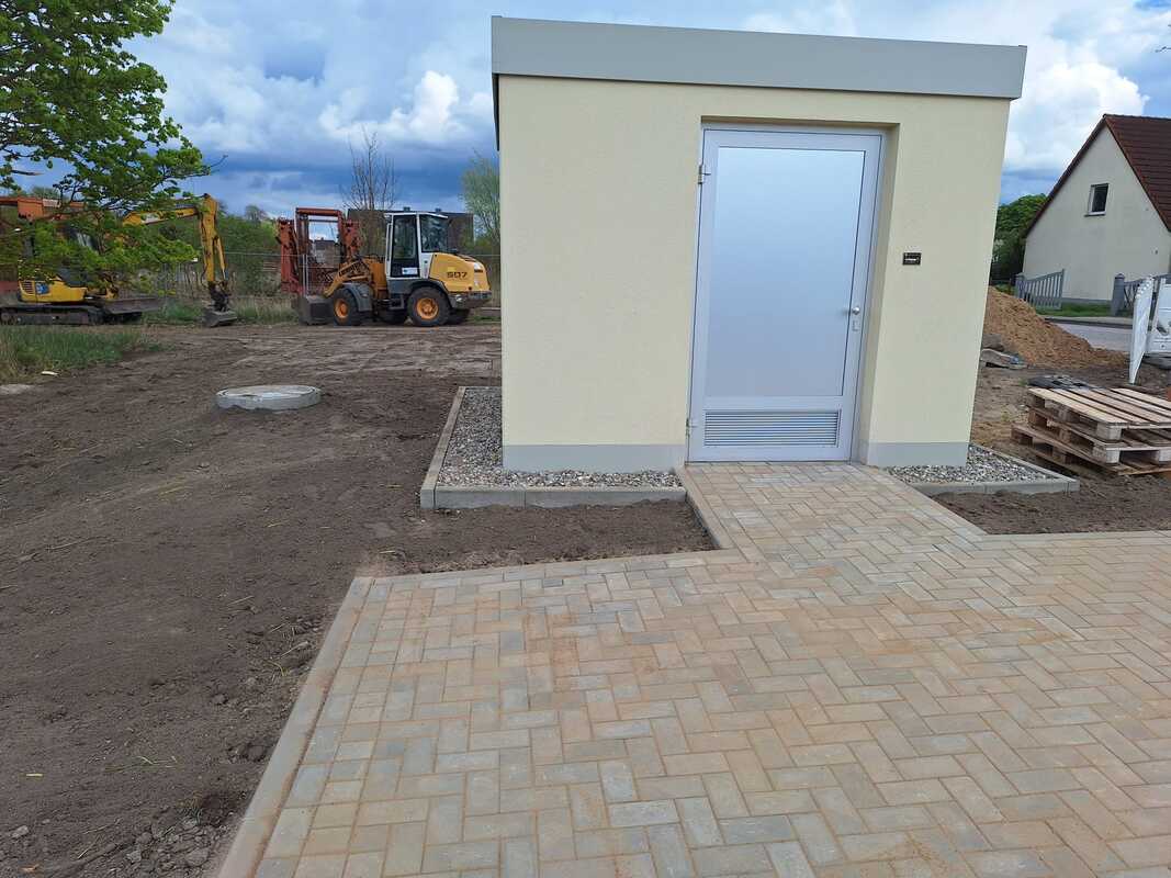Wir als Hauptauftragnehmer haben die gesamte Bauleistung inklusive Tiefbauarbeiten, Rohrverlegung und Außenanlagen durchgeführt.